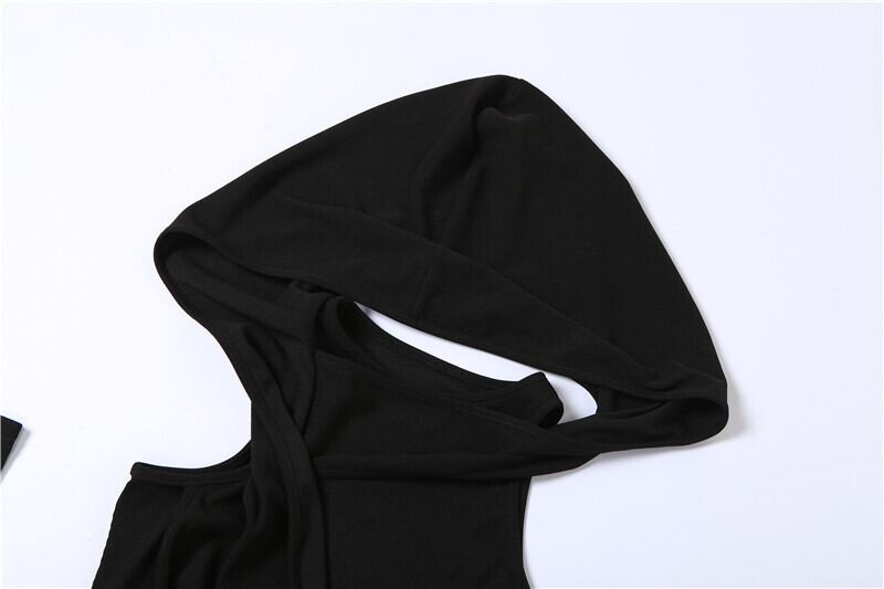 送料無料 ゴスダークドレープサイバー Y2k パンクフード付きミニドレスゴシックグローブスリーブスキニーセクシーなドレス Techwear 黒人女性パーティーウェア ブラック AE155588786920219759 | 女性の為の通販サイト-fashion navi