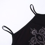 送料無料 ゴスダークモールゴシックラインストーンメッシュキャミソールレタス裾グランジ Y2k セクシーなパッチワーククロップトップスパンクスタイルスリムストリート AE155588780407007211
