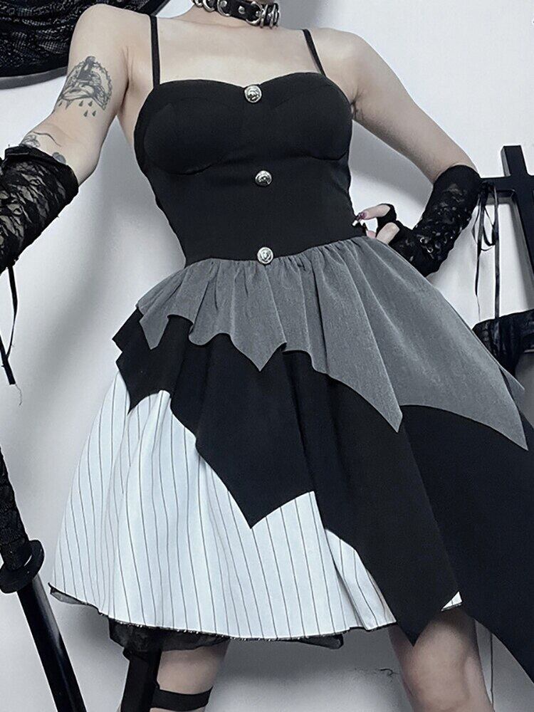 送料無料 ゴスダークパッチワークモールゴシックコスプレセクシーなドレスバット裾グランジ美的パンク女性ミニドレス A ラインスリムエモ Alt 服 Aライン AE155588735195509031