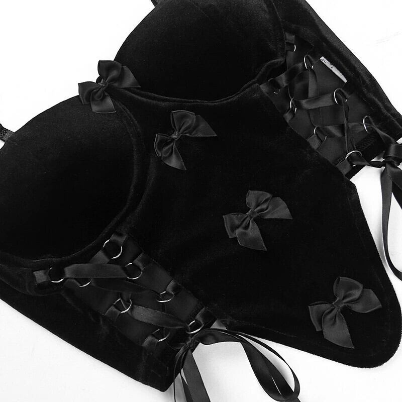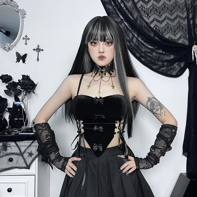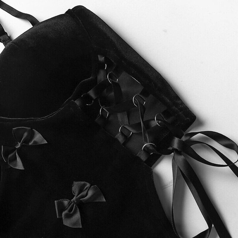 送料無料 ゴスダークボウアップロリータモールゴシック包帯クロップトップスグランジ美的ボディコン女性キャミソール Y2k ベルベットストリートセクシーな Alt 服 リボン AE155588714129888449