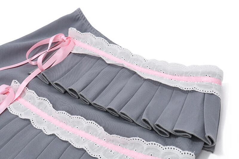 送料無料 ゴスダーク原宿ロリータゴシックかわいいプリーツスカート Y2k ソフトガールかわいい弓レースアップミニスカート女性ローウエストパッチワーク衣装 リボン 大人ガーリー スウィート キュート カジュアル AE155588759647859287