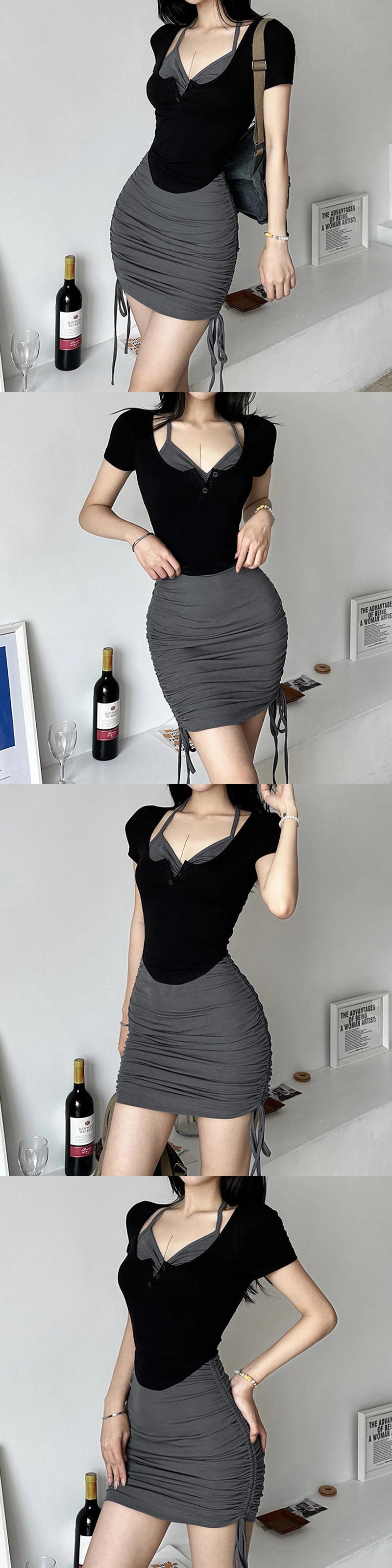 送料無料 ゴスダークストリート Y2k セクシーなミニドレスゴシック巾着ホルターボディコン女性ドレス半袖 Tシャツ 2 個セット ショート ハーフスリーブ AE155588797059286520