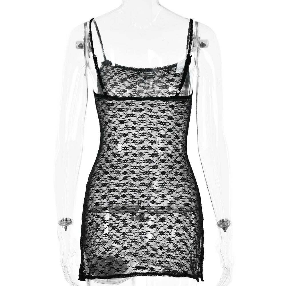 送料無料 ゴスダークシースルーレースフェアリーコアミニドレスレトロ Y2k グランジスプリット女性衣装パーティーウェアゴシックスリングボウセクシーなクラブドレス リボン AE155588764376850331