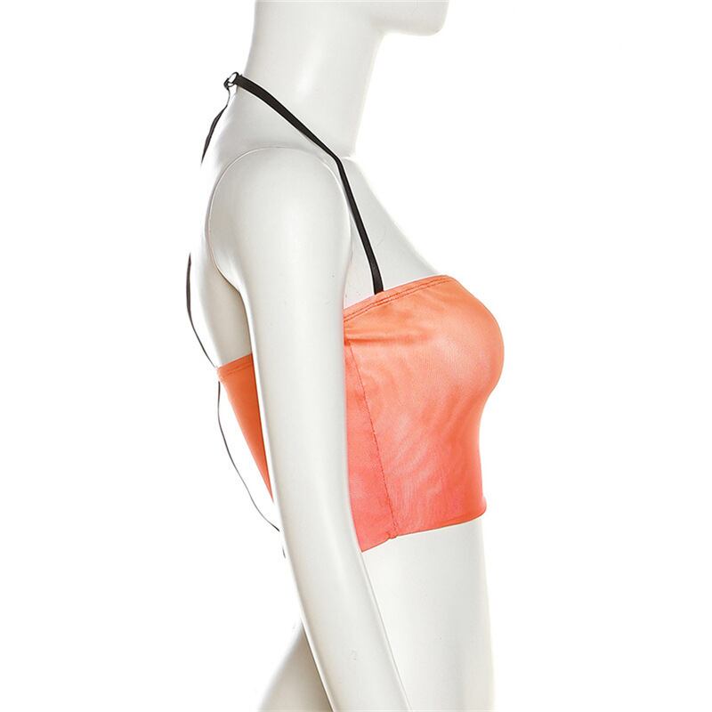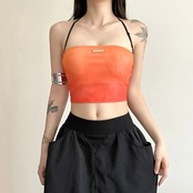 送料無料 ゴスダークタグタイダイ Y2k セクシーなホルタートップスサイバーゴシックパンクストリート女性キャミソール背中の開いたグランジスキニーメッシュチューブトップ AE155588743662116394