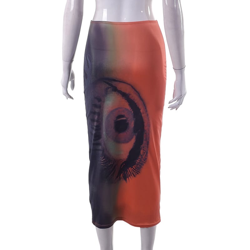 送料無料 ゴスダークタイダイプリントゴシックスリム女性ミディスカートレトロ Y2k 妖精グランジ上げるセクシーなロングスカート夏のパーティーウェア サマー 夏物 AE155588755689189490