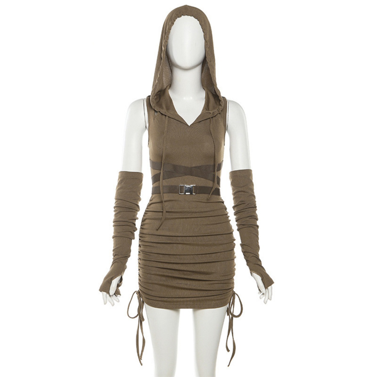 送料無料 ゴスダークサイバー Y2k パンク巾着ミニドレスヴィンテージゴシックフード付きボディコンカーゴドレス女性ストリートグローブスリーブ衣装 ビンテージ AE155588726102600197 | 女性の為の通販サイト-fashion navi
