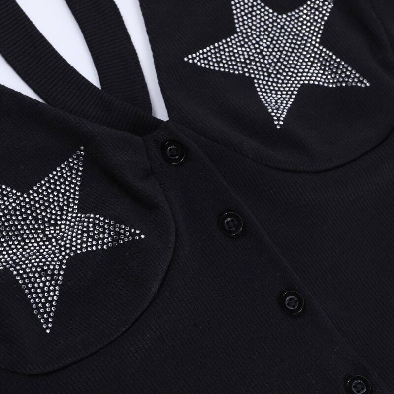 送料無料 ゴスダークモールゴシック Y2k スタースパンコールホルタートップスグランジパンク美的背中の開いたクロップトップ女性レースアップストリート Alt 服 AE155588753984790154