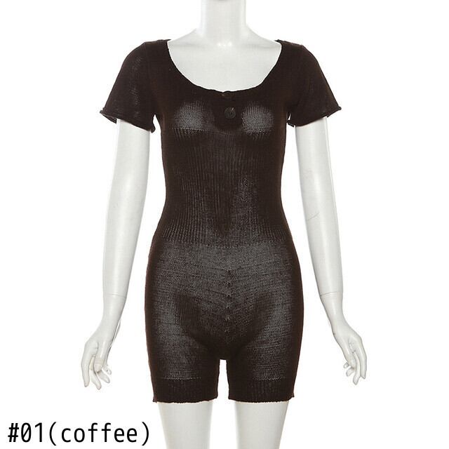 送料無料 ゴスダークニット Y2k 妖精グランジショーツ & 遊び着ゴシックヴィンテージ半袖ボディスーツスキニー固体ストリートロンパース ショート ハーフスリーブ ブルマー ソリッドカラー ビンテージ AE155588752875160344