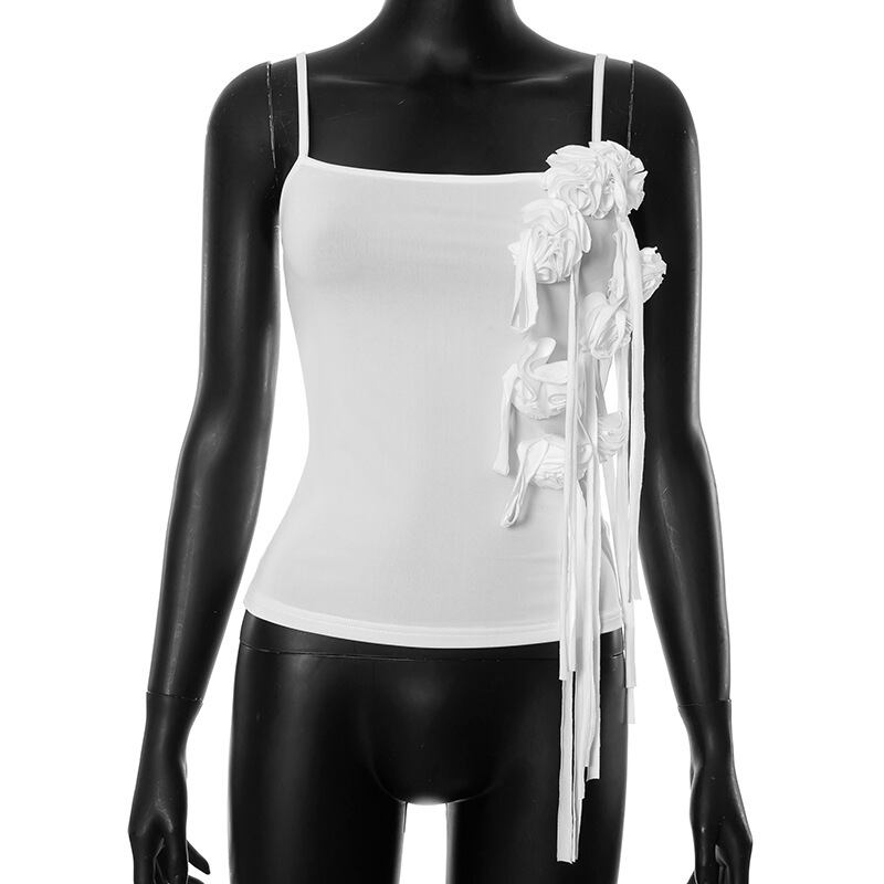 送料無料 ゴスダーク花アップリケテルゴシッククロップトップス Y2k 女性のセクシーな白スキニーキャミソールパーティー背中の開いたストリート夏 ホワイト サマー 夏物 花柄 AE15558879727098055