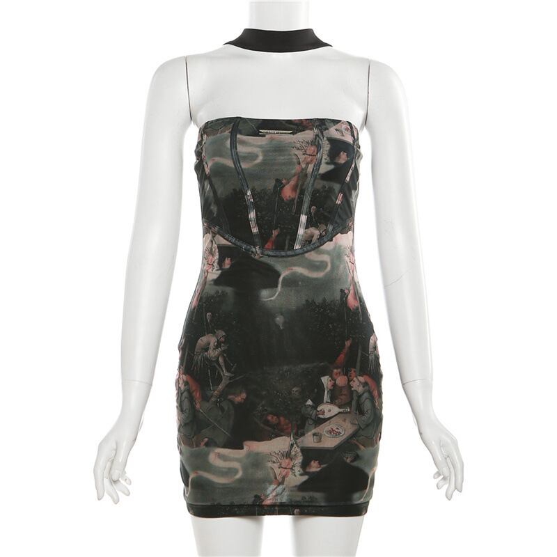送料無料 ゴスダークフェアリーコアグランジ Y2k 美的プリントドレスゴシックヴィンテージホルターコルセットドレス女性のセクシーな背中の開いたパーティーウェア ビンテージ AE155588718000762248 | 女性の為の通販サイト-fashion navi