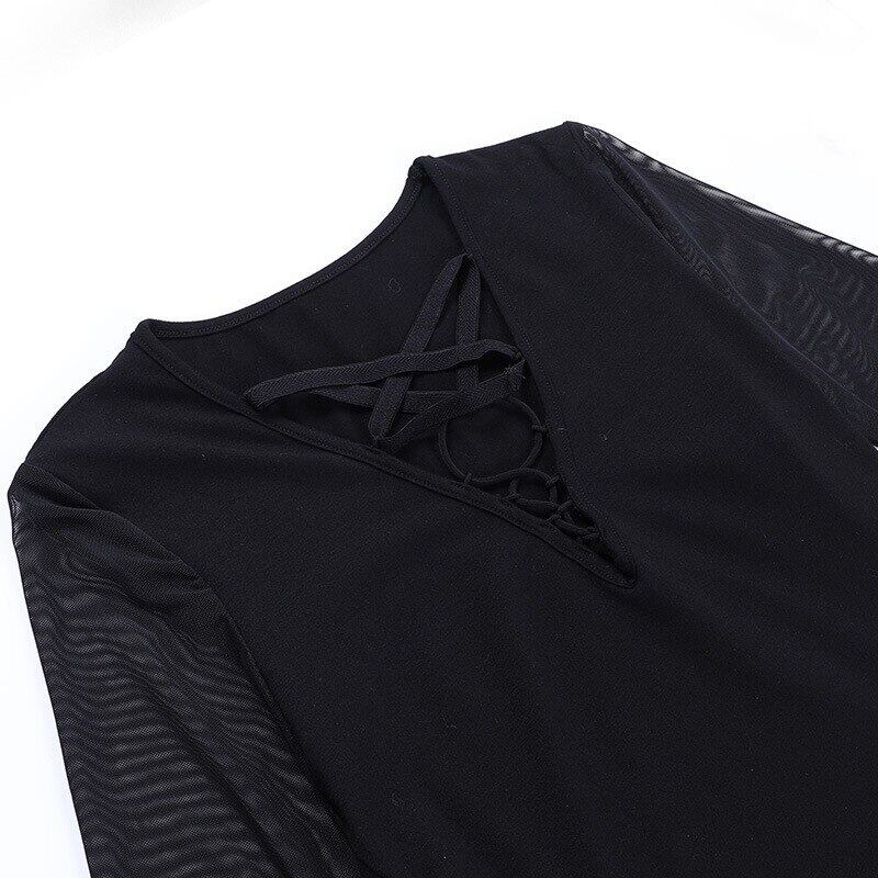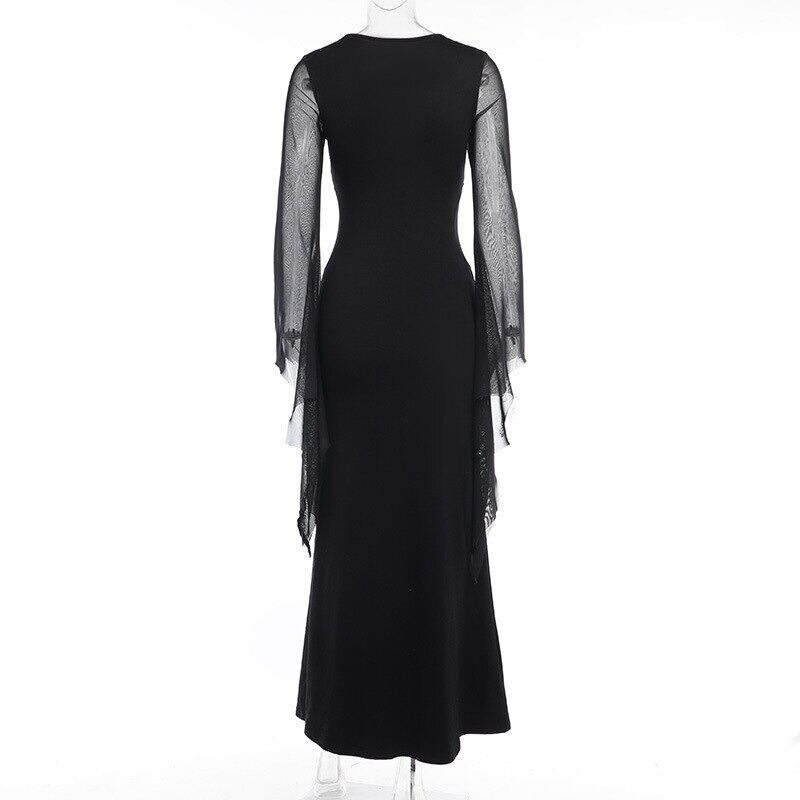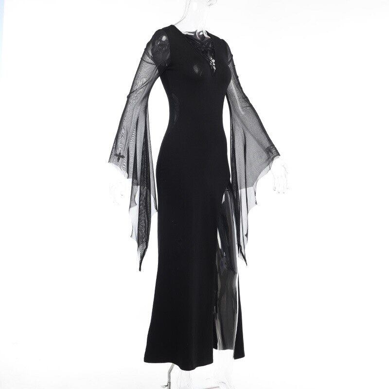 送料無料 ゴスダークメッシュスプライスモールゴシックミディドレスグランジ美的スプリットパーティードレスバットウィングスリーブスリム衣装 AE155588711015118316