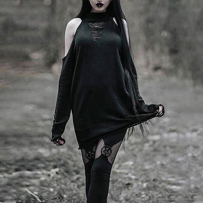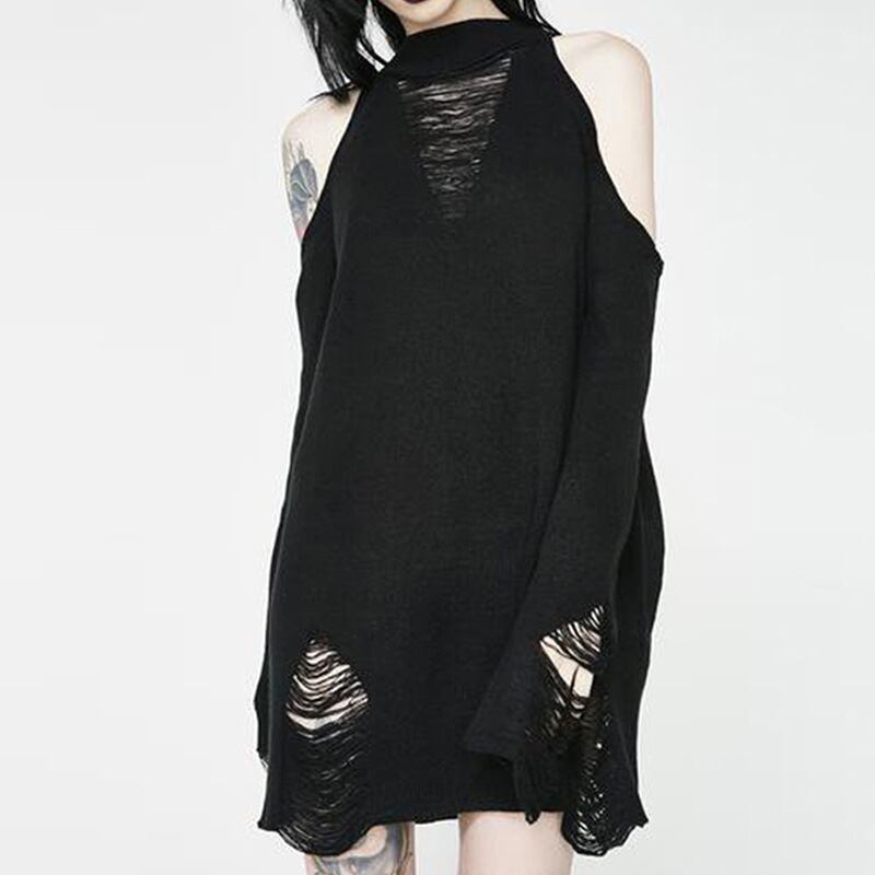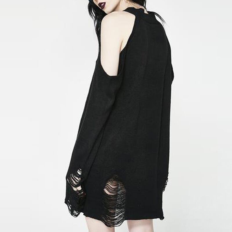 送料無料 ゴスダークモールゴシックスタイル擦り切れセータードレス Y2k パンクオープンショルダーセクシーなルーズニットドレスグランジストリート女性プルオーバー AE155588784143342588