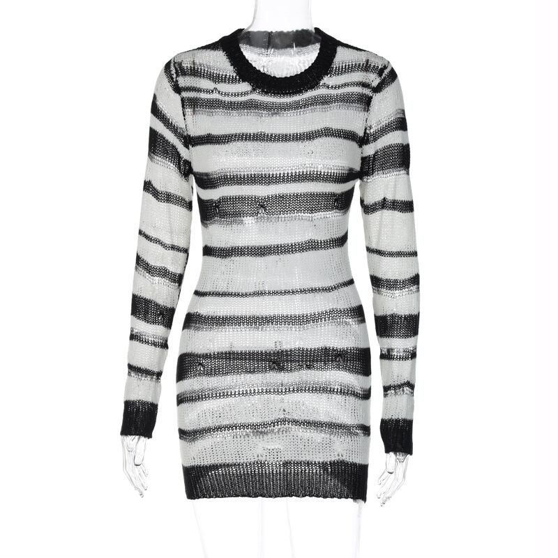 送料無料 ゴスダークストライプモールゴシックニットミニドレスグランジ Y2k 中空アウトセクシーなセーターパンク長袖ボディコン薄手のプルオーバー ロング AE155588759340316018 | 女性の為の通販サイト-fashion navi