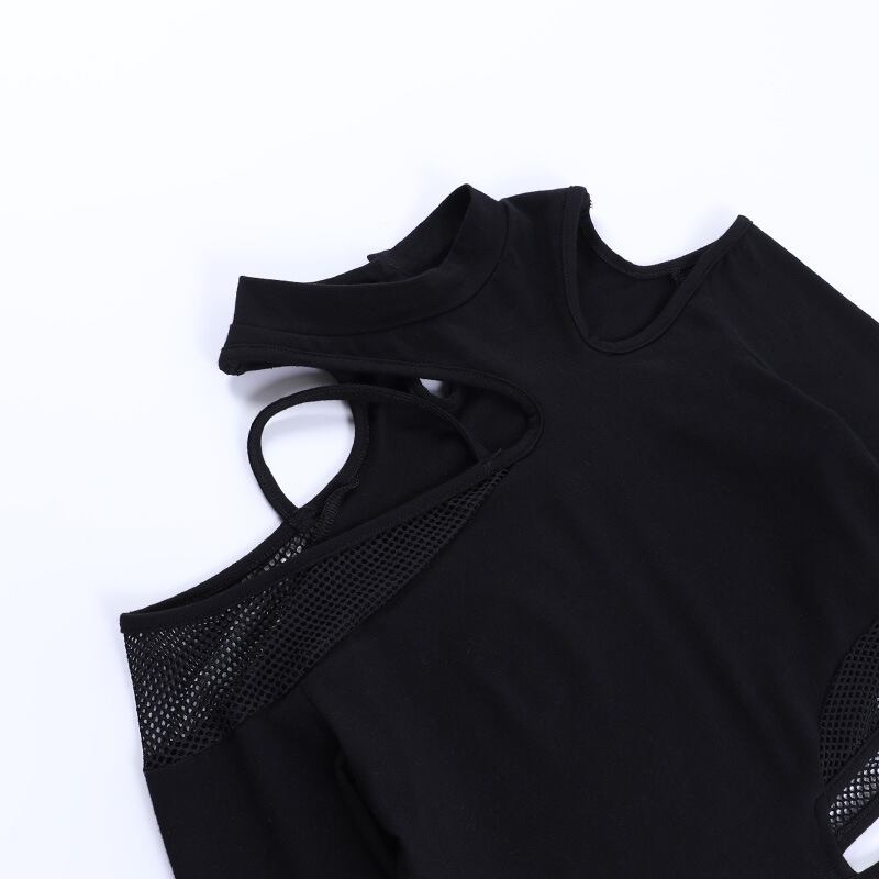 送料無料 ゴスダークモールゴシック中空アウトセクシーな Tシャツグランジ美的 Techwear 不規則なクロップトップスパンク網スプライス長袖 Tシャツ ロング AE155588739551142549