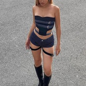 送料無料 ゴスダークサイバーゴシック中空アウトセクシーなストラップレス Y2k パンクジップバックボディコン女性チューブトップスパッチワークストリートクロップラップ胸 AE155588739051447417