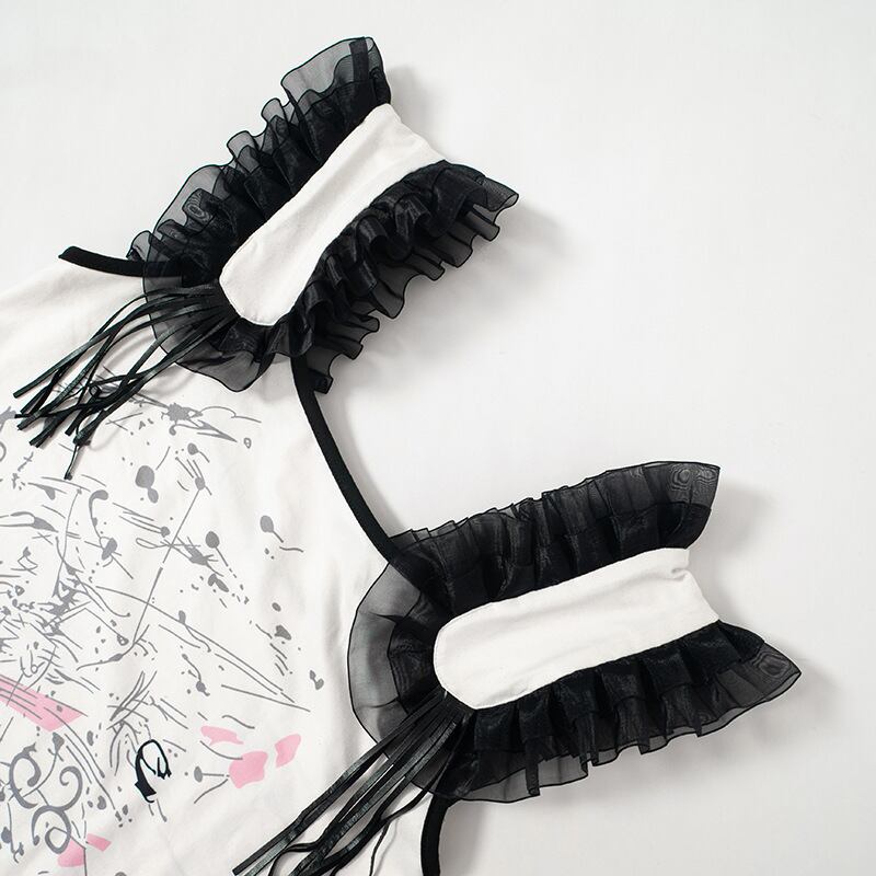送料無料 ゴスダークロリータゴシックレーストリムかわいいタンクトップ原宿 ese Y2k フリル女性クロップトップパッチワークプリントノースリーブ AE155588747635446296