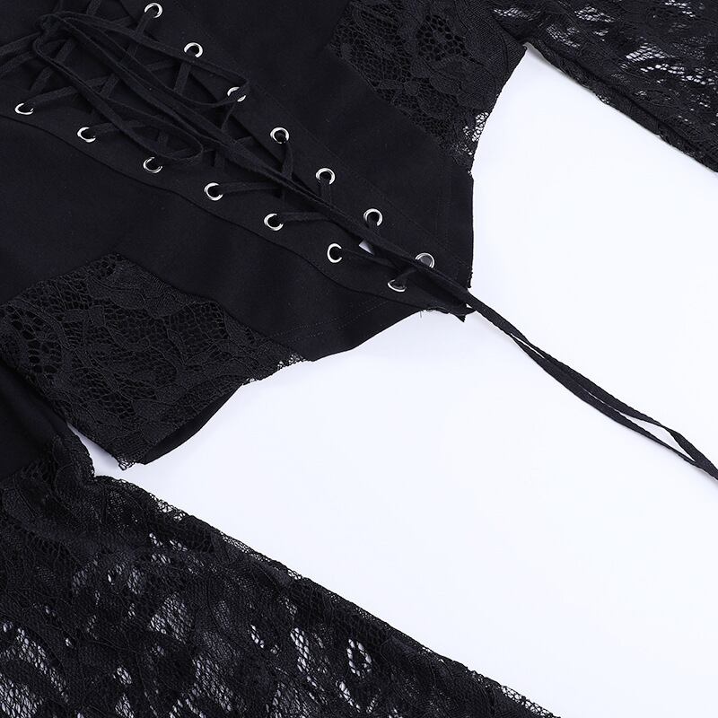 送料無料 ゴスダークレースパッチワークグランジブラウスモールゴシック美的包帯セクシーなクロップトップスパンク女性フレアスリーブalt服 AE155588712741464992 | 女性の為の通販サイト-fashion navi