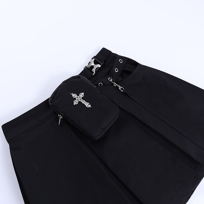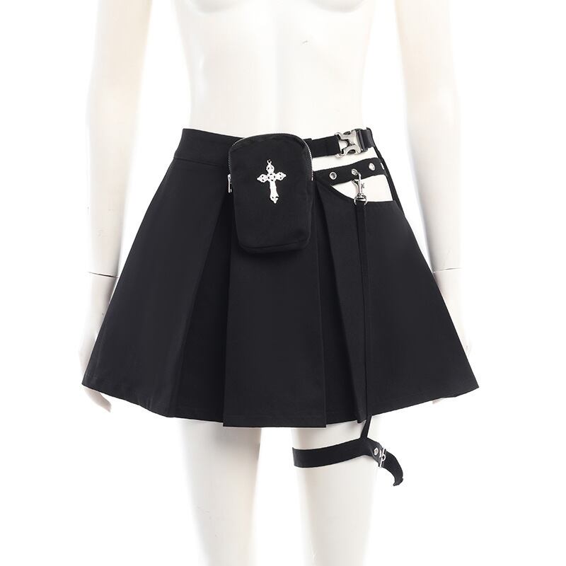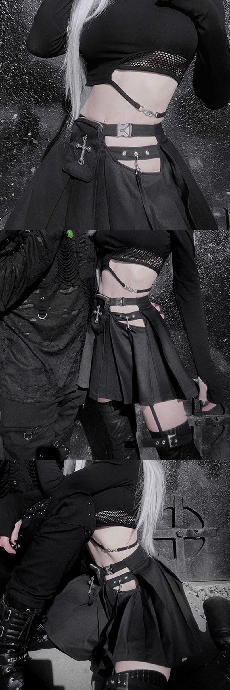 送料無料 ゴスダーク原宿ストリートプリーツセクシーなスカートモールゴシックバックル中空アウトミニスカート Techwear パンクウエストカーゴボトム かわいい AE155588781620869151