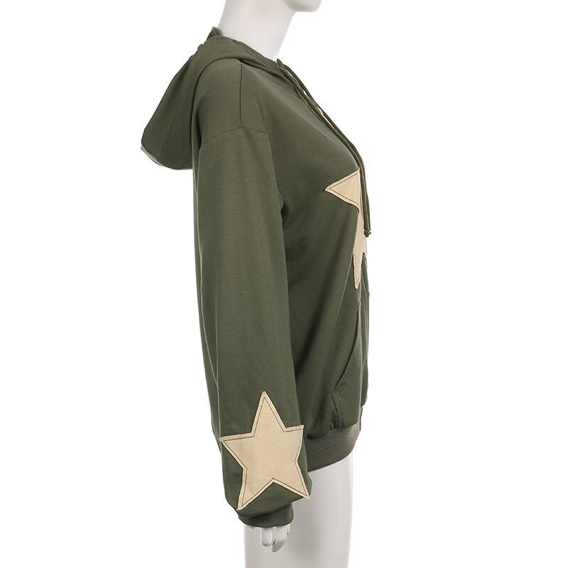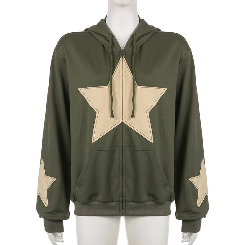 送料無料 ゴスダークスターガール Y2k ストリートジップアップスウェットゴシックルーズパーカー 90 年代グランジポケットフード付きカーディガン秋 シャツ AE155588769107969664