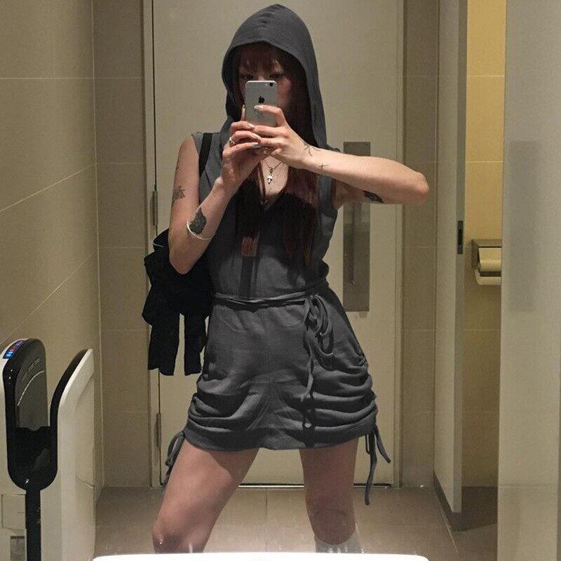 送料無料 ゴスダークサイバーゴシック中空アウトセクシーなミニドレス Y2k パンクフード付き巾着パーティーミニドレスグランジストリート AE155588712606948672 | 女性の為の通販サイト-fashion navi