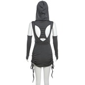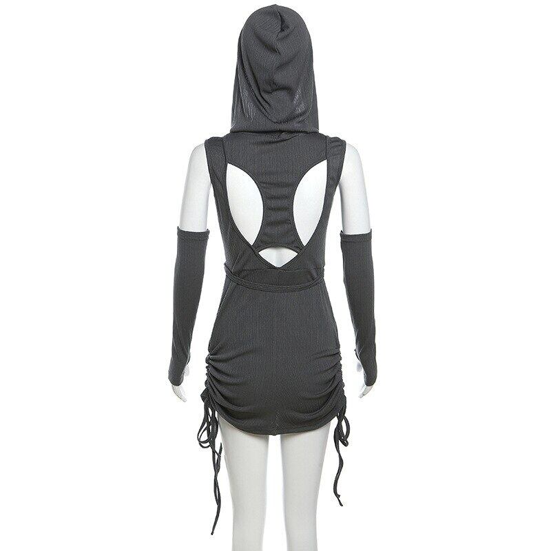 送料無料 ゴスダークサイバーゴシック中空アウトセクシーなミニドレス Y2k パンクフード付き巾着パーティーミニドレスグランジストリート AE155588712606948672
