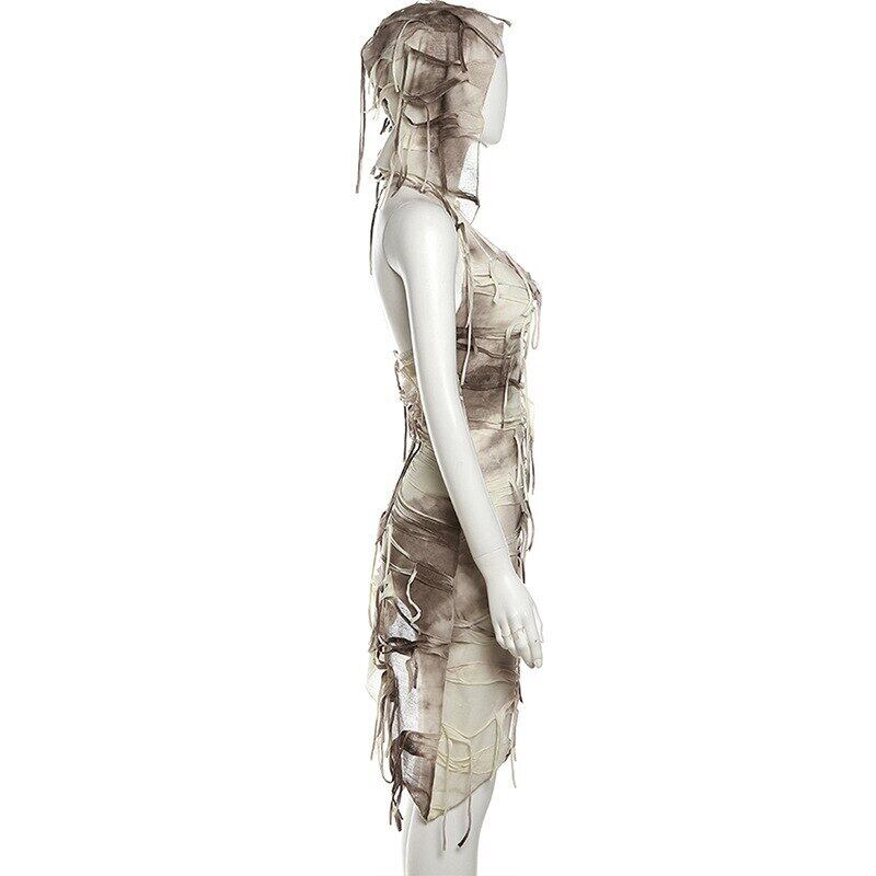 送料無料 ゴスダークタイダイフード付きグランジY2kミニドレスフェアリーコアヴィンテージゴシック電話女性ドレスセクシーなクラブノースリーブ90年代ストリート ビンテージ AE155588762661498241