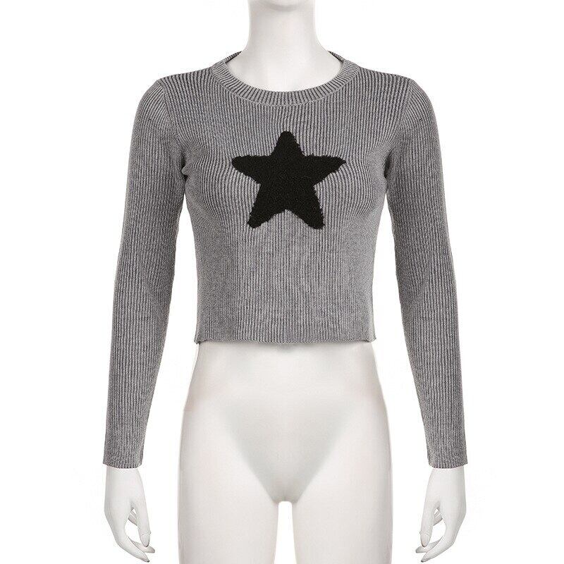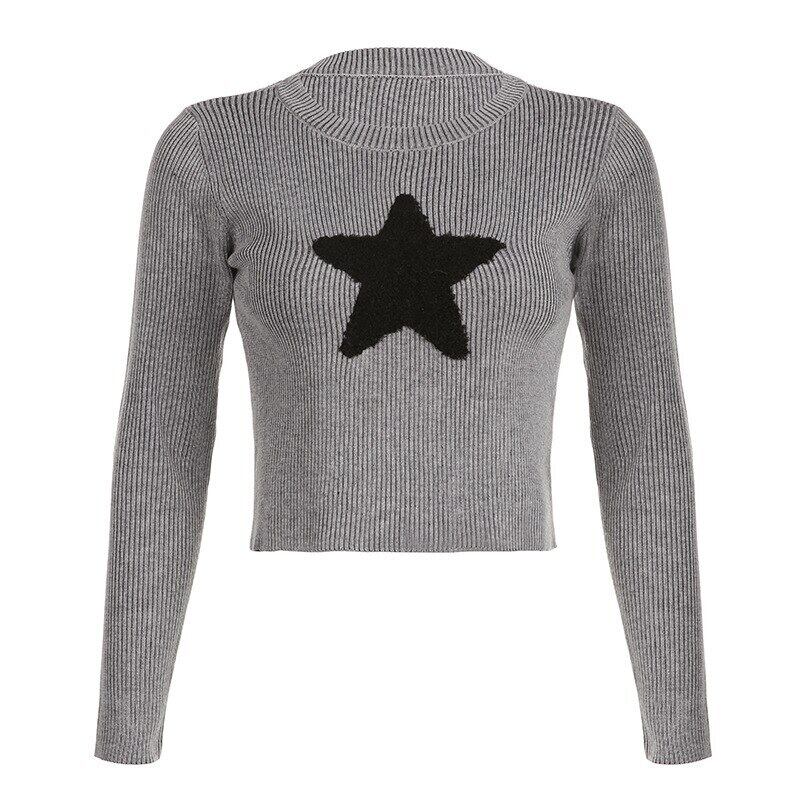 送料無料 ゴスダークスターガール Y2k ストリートニット Tシャツヴィンテージゴシックリブ女性クロップトップス 90 s グランジ長袖セーター ロング ビンテージ AE155588778656045653