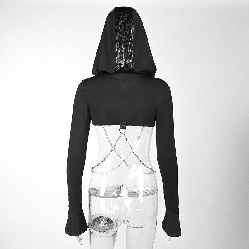 送料無料 ゴスダークグランジ美的チェーン作物ジャケットモールゴシックフード付きパッチワークパーカー女性パンク長袖オルトストリート ロング AE155588721754164153 | 女性の為の通販サイト-fashion navi