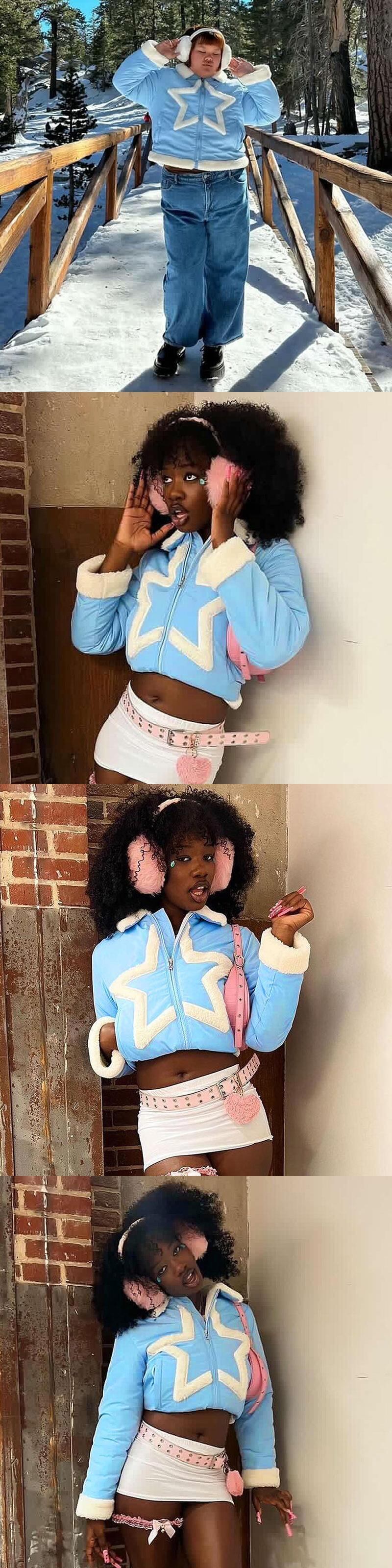 送料無料 ゴスダークゴシックフェイクファー襟かわいいダウンジャケット Y2k ガールスター植毛カラーブロックコート女性の冬暖かいストリート 大人ガーリー スウィート キュート カジュアル ウィンター 冬物 AE155588741433208202