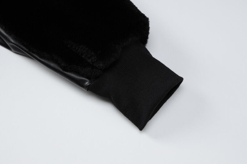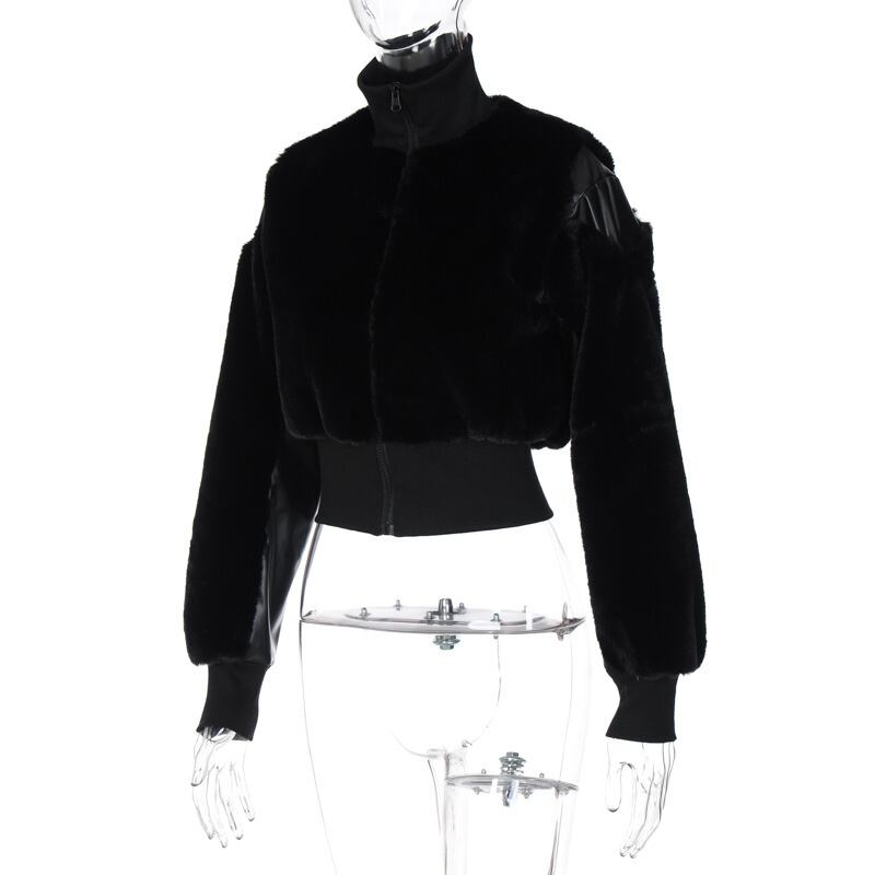送料無料 ゴスダークフェイクファーレザーパッチワーク Y2k ジャケットゴシックジップアップ女性クロップコートグランジタートルネックパンク黒ストリート ブラック AE155588789044141201