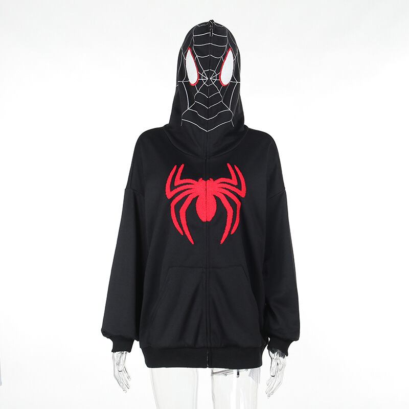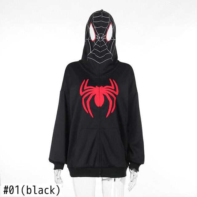送料無料 ゴスダークスパイダーウェブ植毛モールゴシックパーカージップアップフード付きグランジスウェット女性ストリートオーバーサイズ Alt 服 シャツ AE155588794761488853