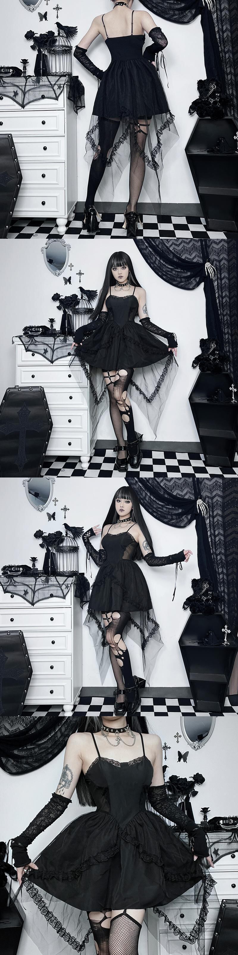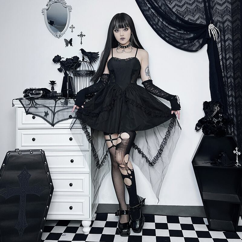 送料無料 ゴスダークメッシュパッチワークロリータゴシック A ラインドレスグランジパンクスタイルスリングミニドレス女性薄手のセクシーな不規則なパーティー衣装 Aライン AE15558876523611356