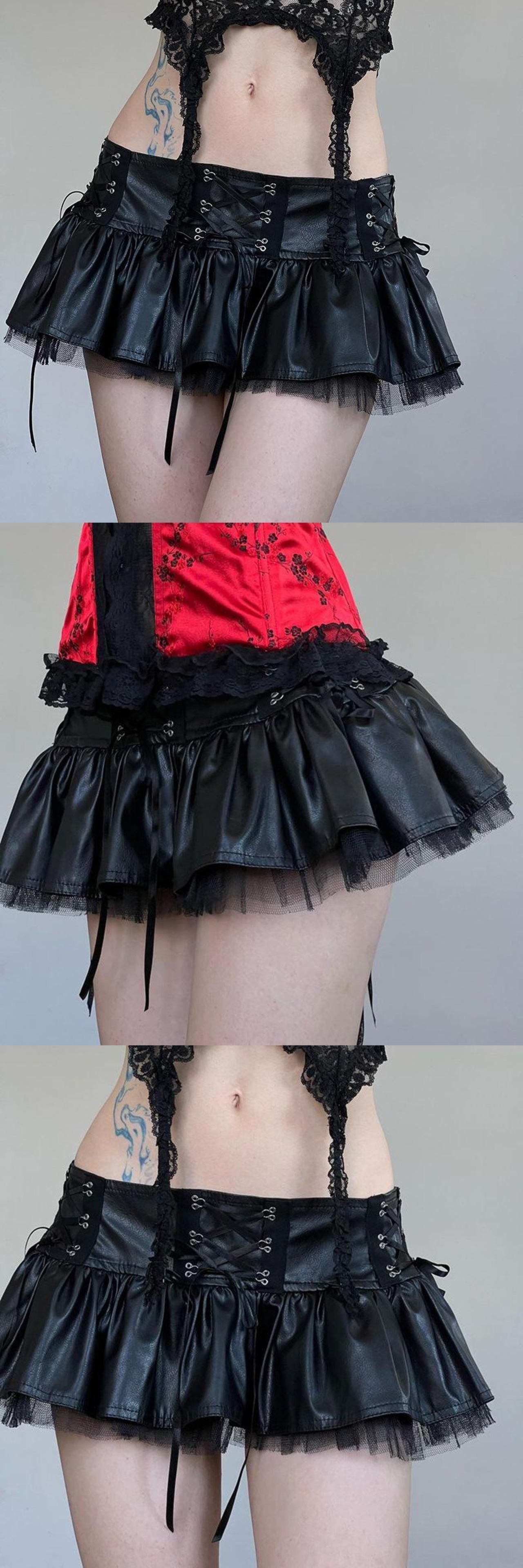 送料無料 ゴスダークパンクグランジレースアップフェイク Pu ミニスカートモールゴシックセクシーなローウエストパーティーマイクロスカートストリートプリーツメッシュ Alt 布 ファー AE155588743137558367 | 女性の為の通販サイト-fashion navi