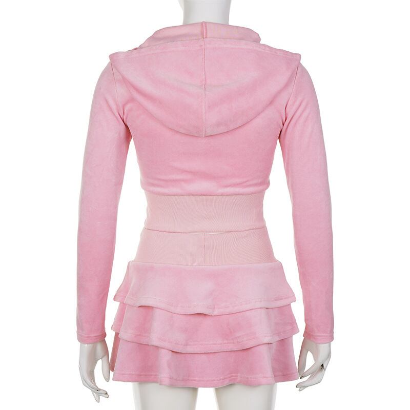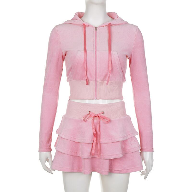 送料無料 ゴスダーク 2000 年代美的ピンクベルベットスカート 2 ピースセットごみ Y2k 女性スリムジャケットプリーツ A ラインウエストミニスカートスーツ Aライン AE155588794019860675
