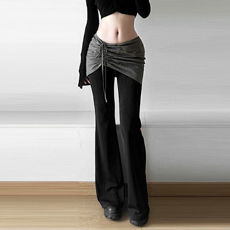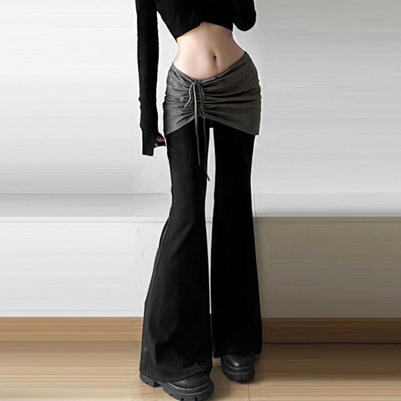 送料無料 ゴスダーク巾着 Y2k パンクパッチワークフレアパンツモールゴシック Rasie 女性のズボングランジスリムストリートボトムス AE155588744418135905