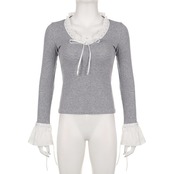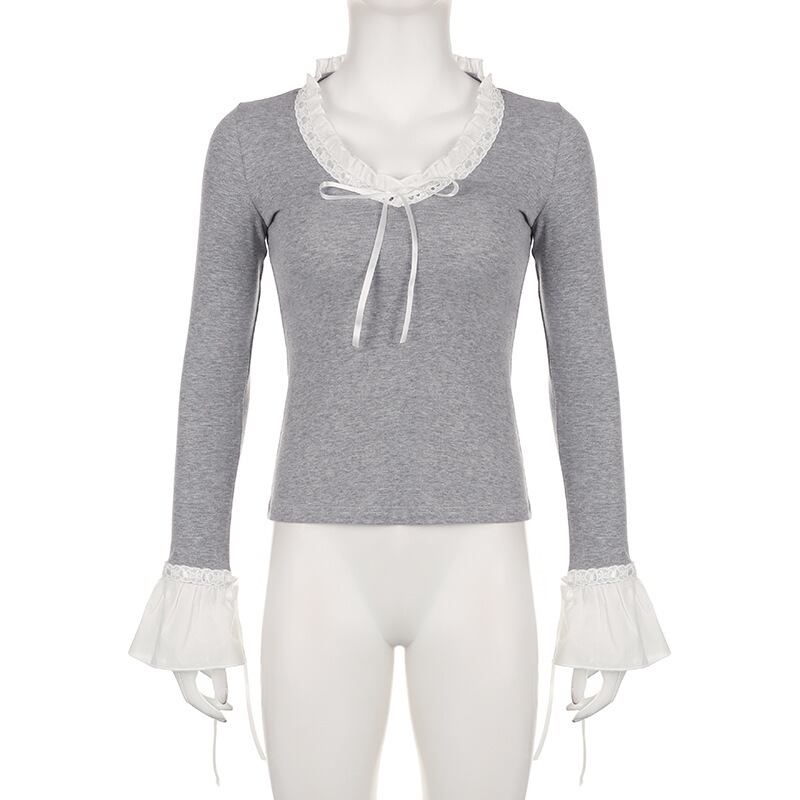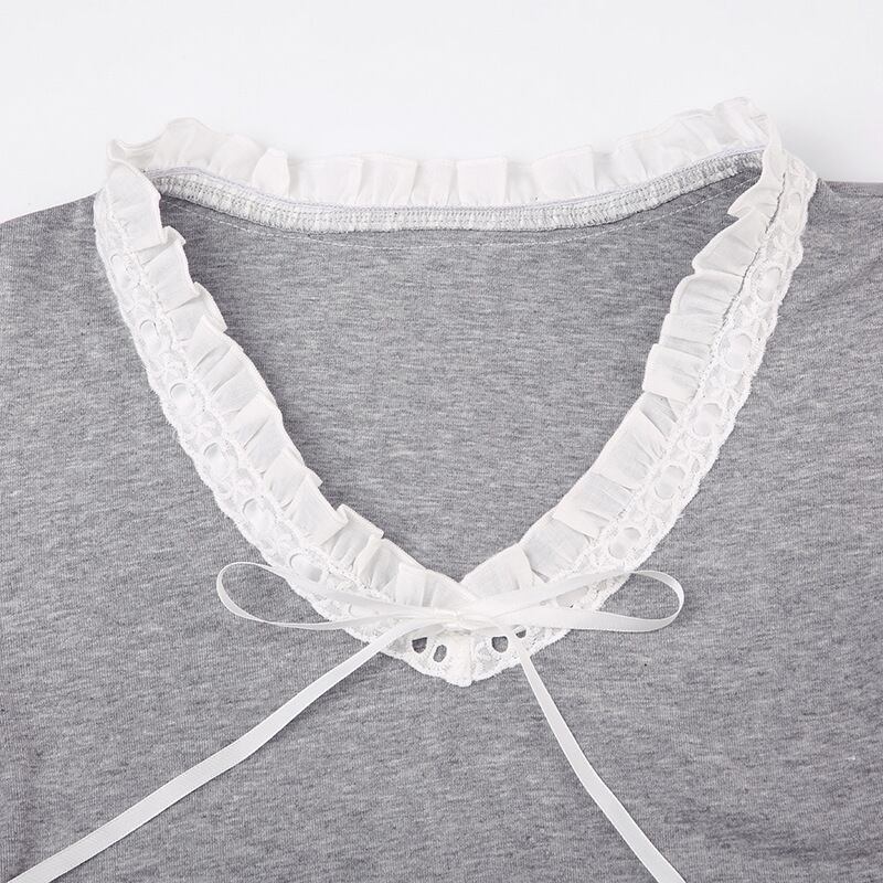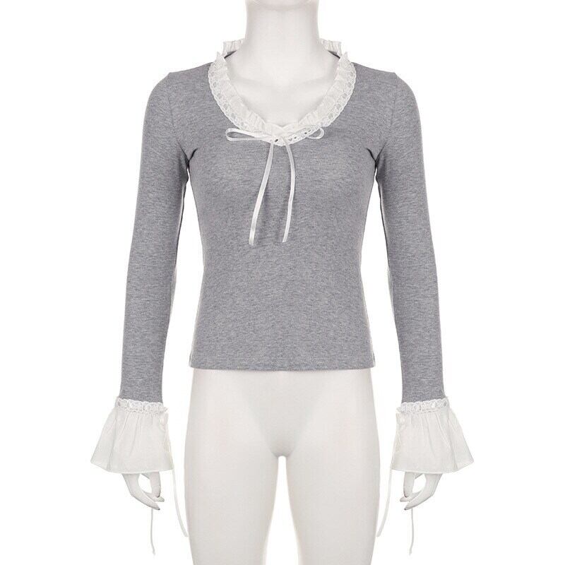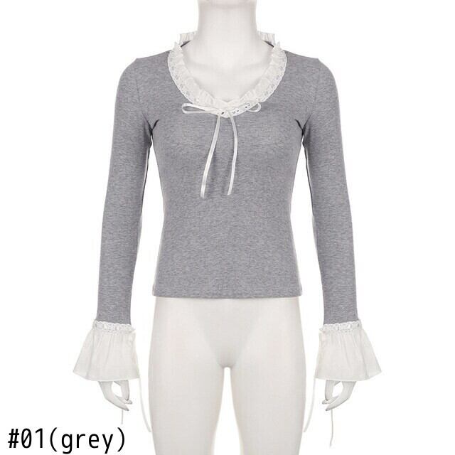送料無料 ゴスダーク Cutecore ロリータレースパッチワーク Tシャツフリル裾フレアスリーブ女性クロップトップスレトロ Y2k セクシーな V ネックボディコンブラウス ラッフル 大人ガーリー スウィート キュート カジュアル Vネック AE155588763304809088
