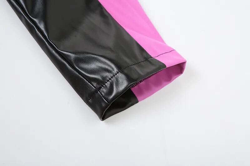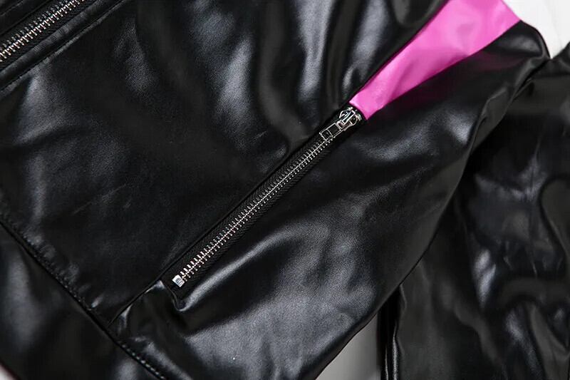 送料無料 ゴスダークバイカーコアコントラストカラーフェイク Pu モトジャケットサイバー Y2k パンクレザージップアップコートゴシックポケットスリムストリート ファー AE155588734280411873