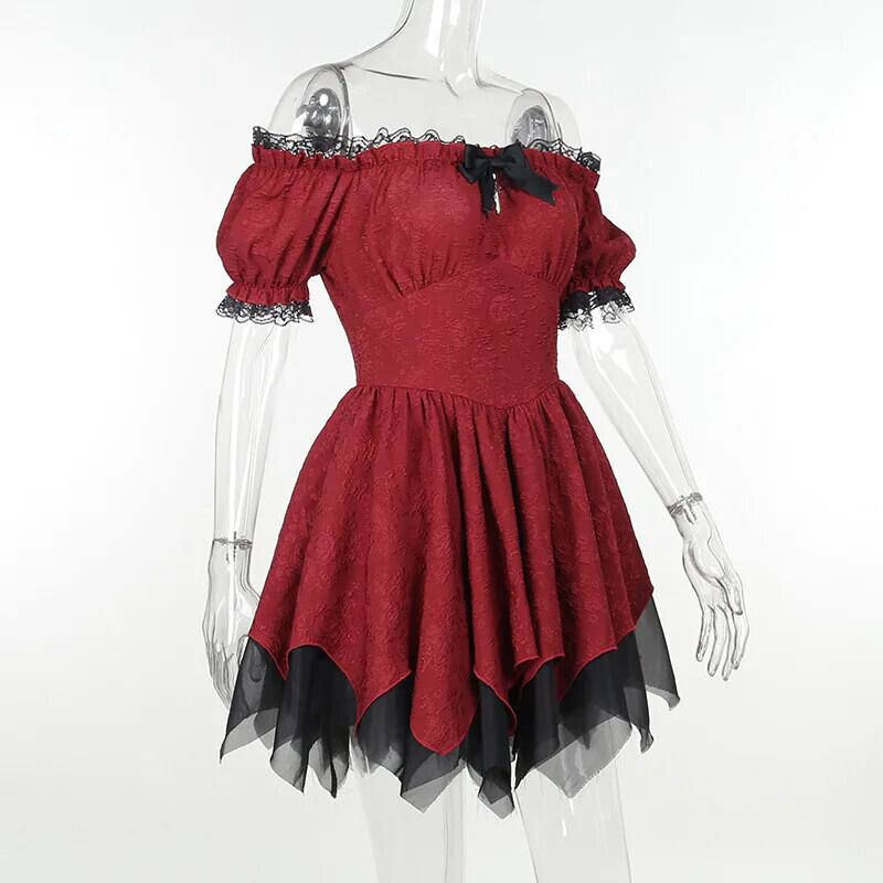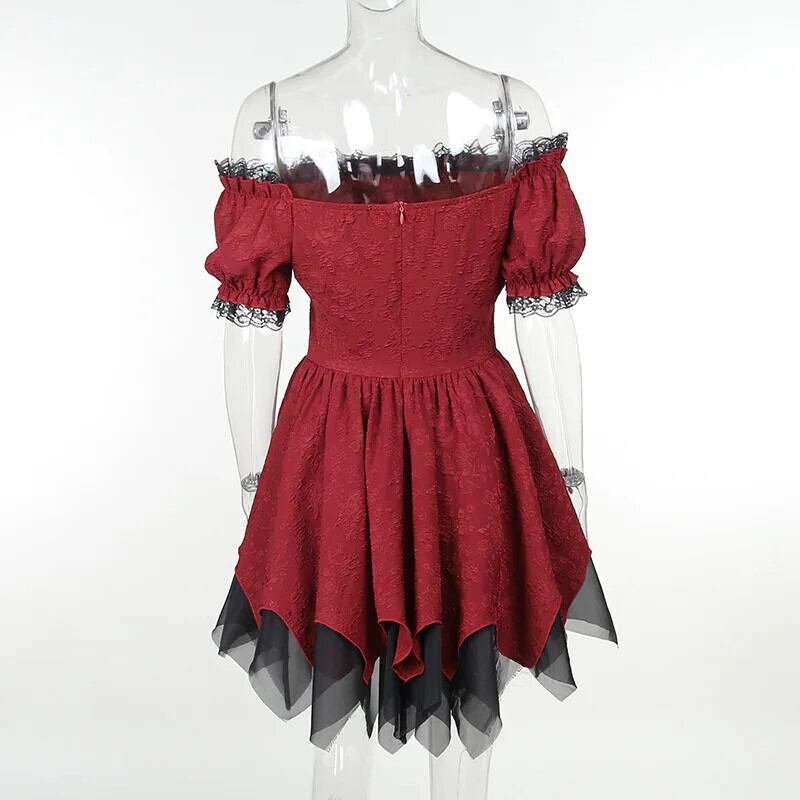 送料無料 ゴスダークパンクゴシック傷 A ラインドレスオフショルダーメッシュトリムグランジミニドレス女性フェイク Pu 包帯コルセット Alt 服 ファー Aライン AE155588772730981885