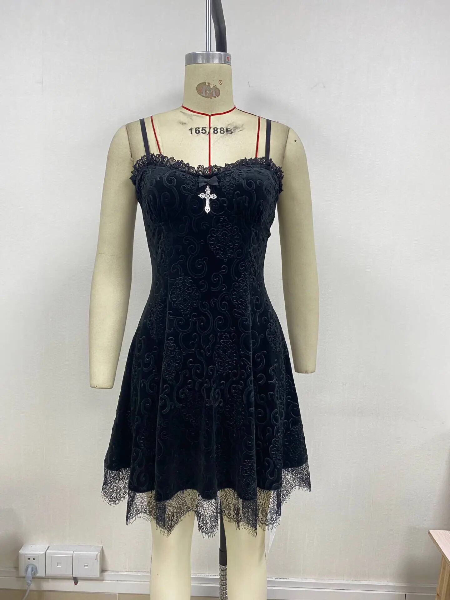 送料無料 ゴスダークジャカードモールゴシックベルベットパーティードレススリングセクシーなグランジパンクヴィンテージミニドレス女性スキニーレーストリム Alt 服 ビンテージ AE155588740835304975
