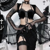 送料無料 ゴスダーク包帯モールゴシック女性クロップトップスグランジセクシーなメッシュベルベットパッチワークブラウス女性フレアスリーブalt AE15558877621233754 | 女性の為の通販サイト-fashion navi