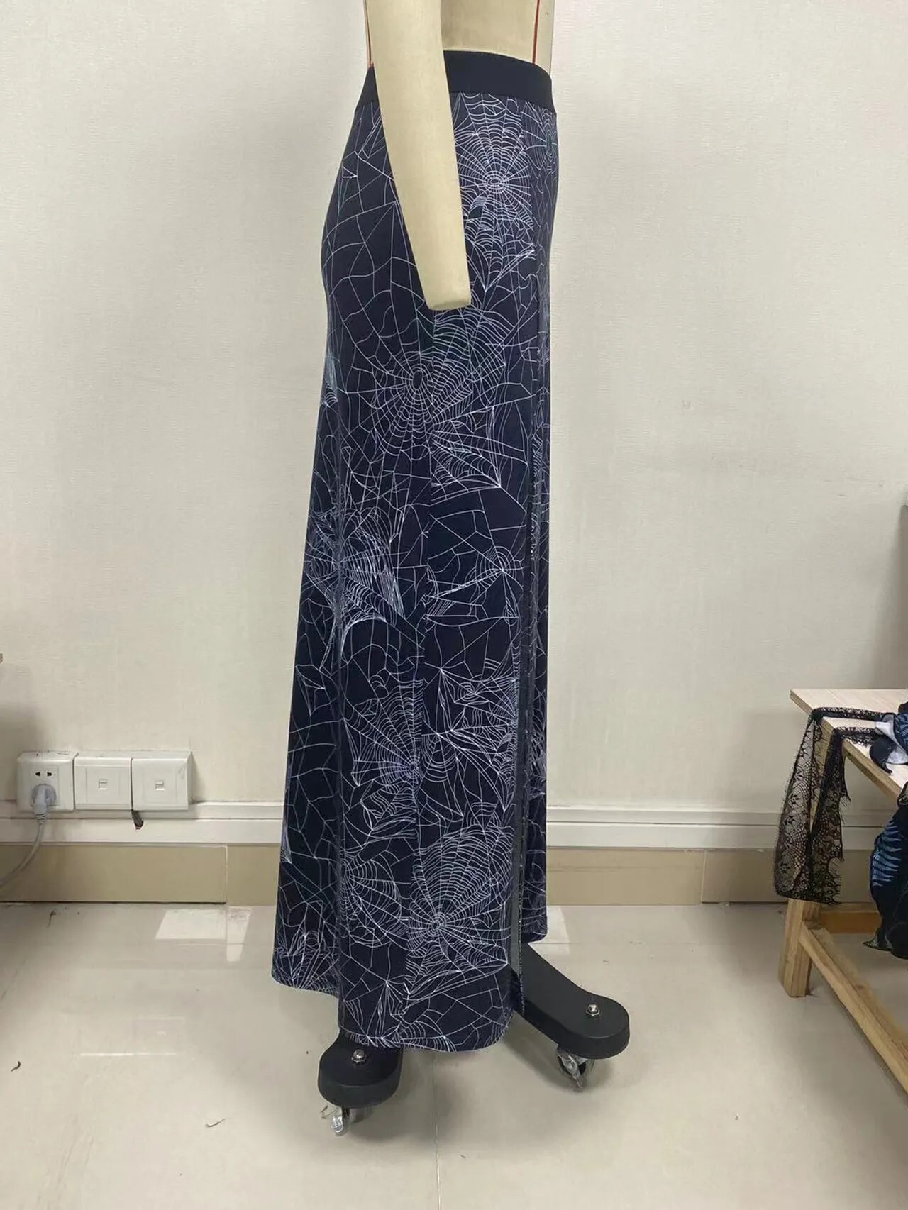 送料無料 ゴスダークサイバーゴシックパンクスパイダーウェブマキシスカートグランジ美的分割セクシーな女性ボトムスウエスト A ラインプリントロングスカート Aライン AE155588763231100074 | 女性の為の通販サイト-fashion navi