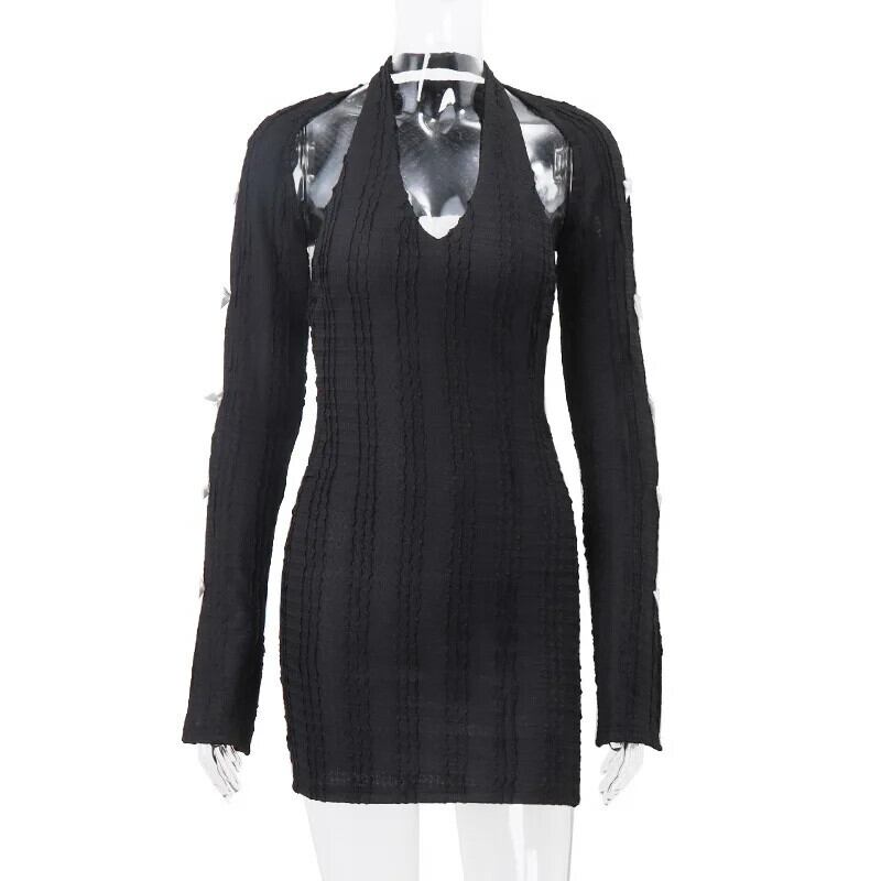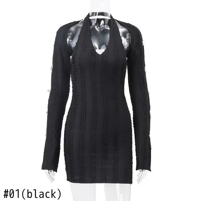 送料無料 ゴスダーク Kwaii 弓 Y2k リブホルタードレス原宿ロリータゴシックセクシーな 2 ピースセット長袖クロップトップ背中の開いた女性のドレス ロング リボン かわいい AE155588795316675550