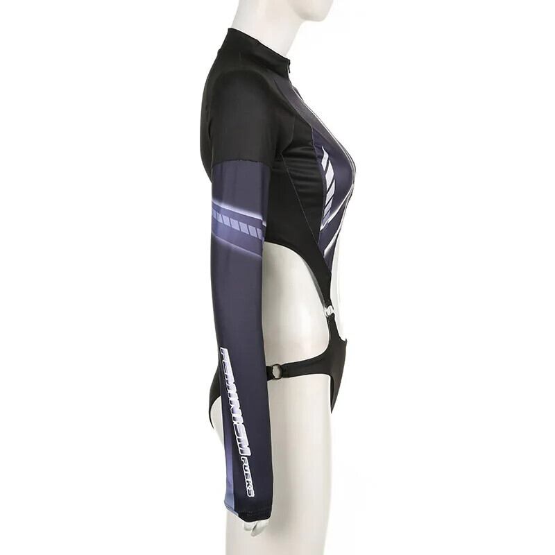 送料無料 ゴスダークモトバイカーサイバー Y2k パンクボディスーツゴシック Techwear 中空アウトセクシーな女性トップスジップアップ長袖 O リング秋ボディスーツ ロング AE155588773710233571