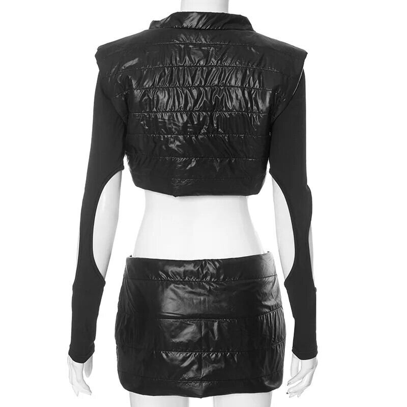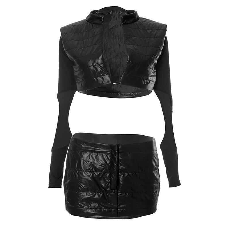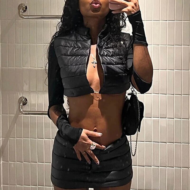 送料無料 ゴスダークグランジストリートセクシーな女性フグスカートスーツ Y2k パンクパッチワークスリムダウンコートジャケットゴシック秋パッド入りスカート オータム 秋物 AE155588745526359625