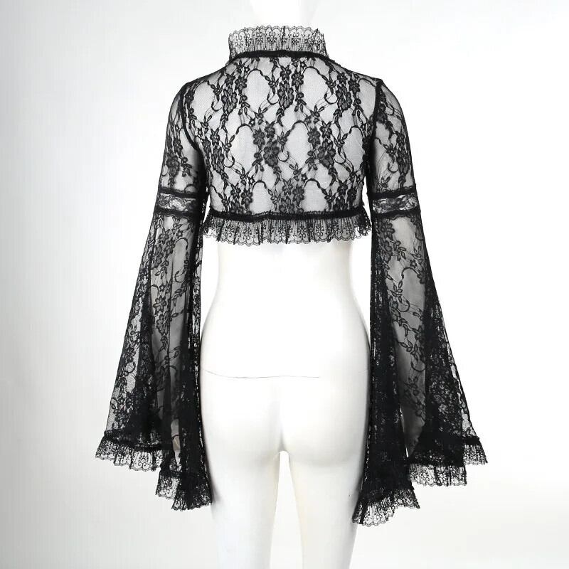 送料無料 ゴスダークレースモールゴシックヴィンテージ作物すくめトップスグランジパンクフレアスリーブスモックトップ女性包帯魔女オルトストリート ビンテージ AE155588776220574161