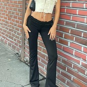 送料無料 ゴスダーク Y2k フリルローウエストセクシーな女性パンツゴシックスキニーブーツカットズボングランジスキニーストリート秋 ラッフル オータム 秋物 AE15558878952901439