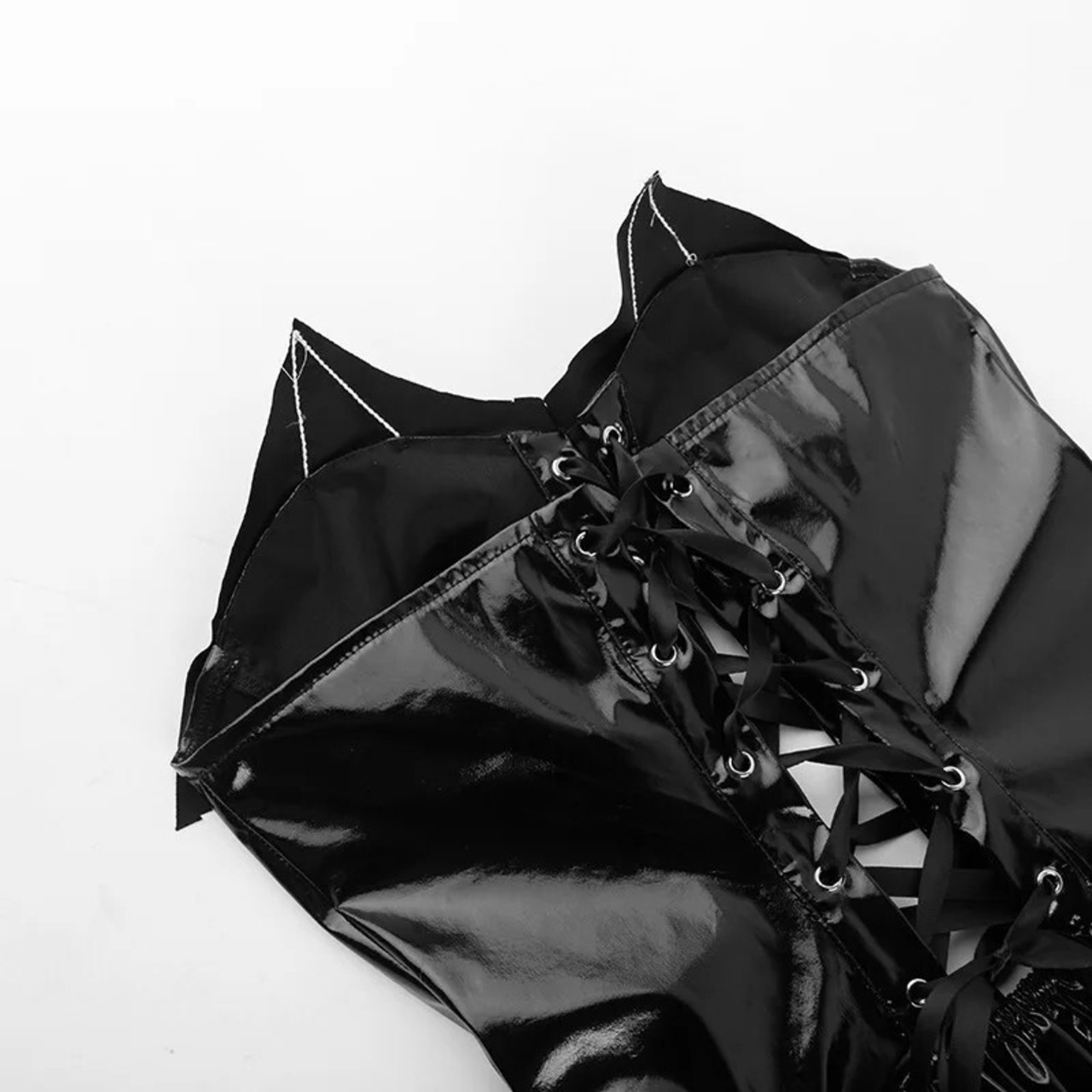 送料無料 ゴスダーク原宿コスプレゴシック包帯バットドレス Y2k パンクセクシーな中空アウトストラップレスドレス女性フェイク Pu メッシュ裾クラブウェア かわいい ファー AE155588725660724469