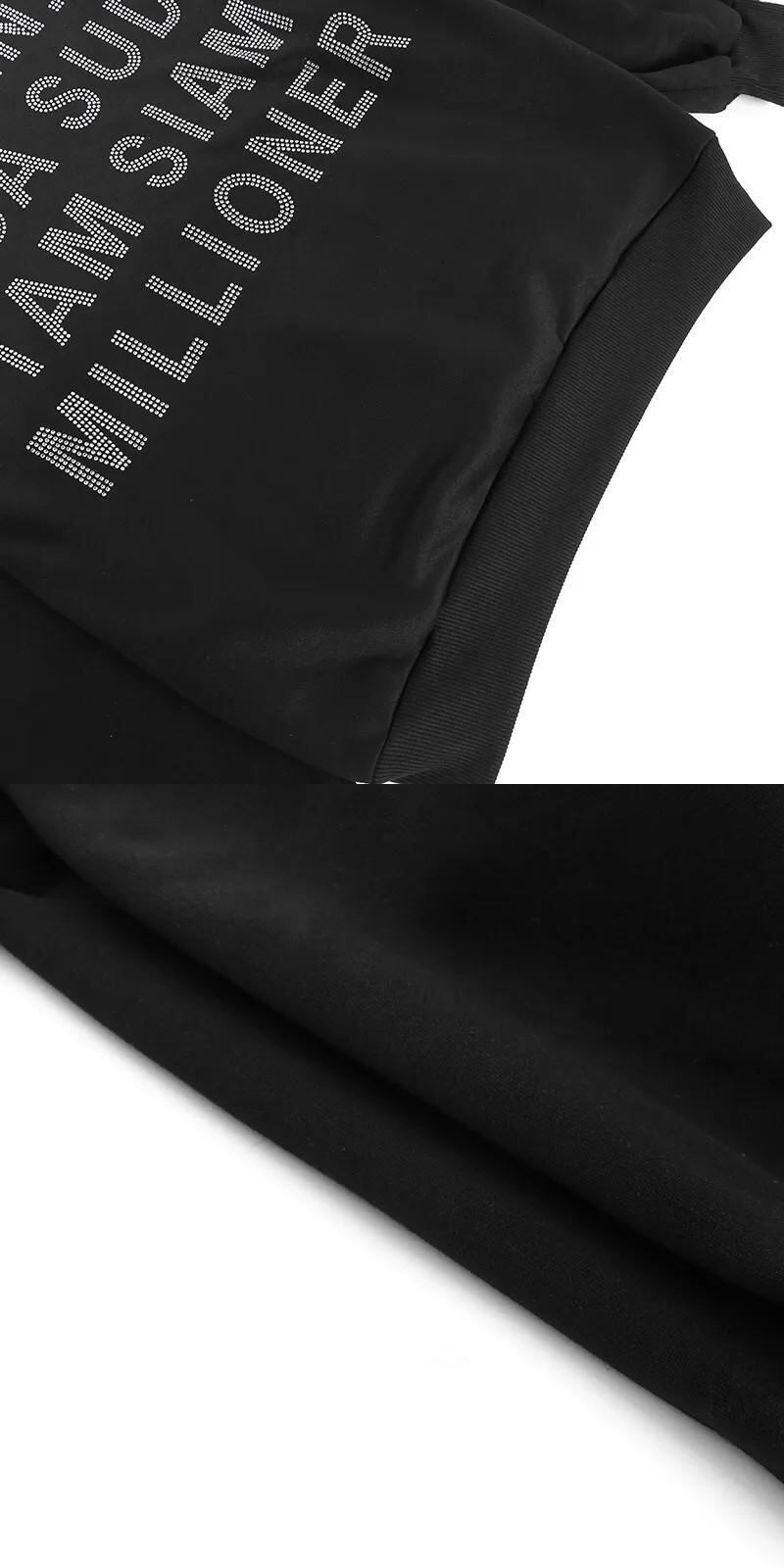 送料無料 ゴスダークラインストーン Y2k 秋女性オーバーサイズパーカーサイバーゴシックカンガルーポケットスウェットグランジ黒ルーズフード付きプルオーバー ブラック シャツ AE15558873627437543