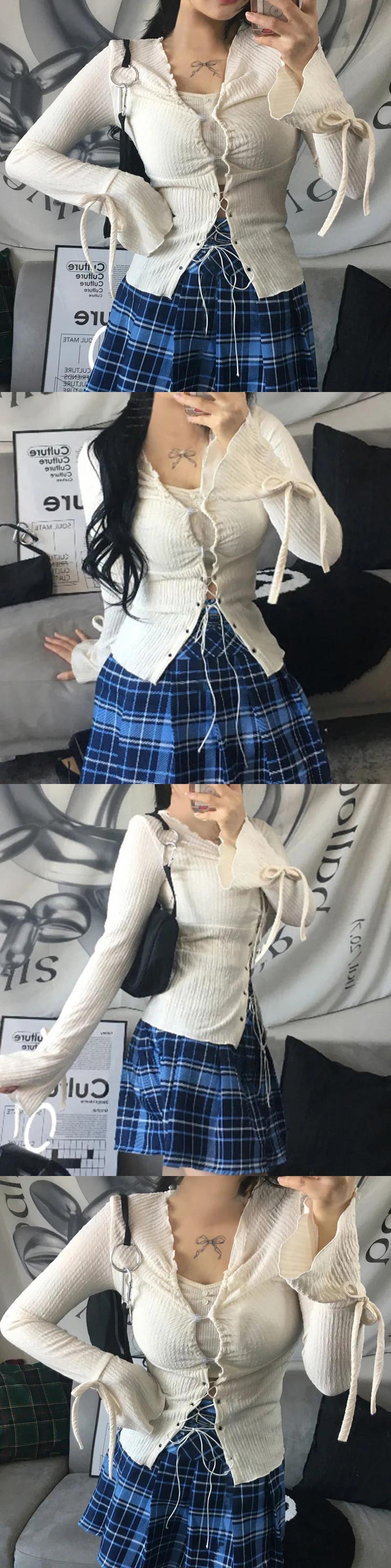 送料無料 ゴスダーク Acubi Y2k レースアップ Tシャツ 2 枚セット女性ホワイトセクシーなスキニーキャミソール原宿かわいい甘いフリルひだブラウス ラッフル 大人ガーリー スウィート キュート カジュアル AE155588742599607663