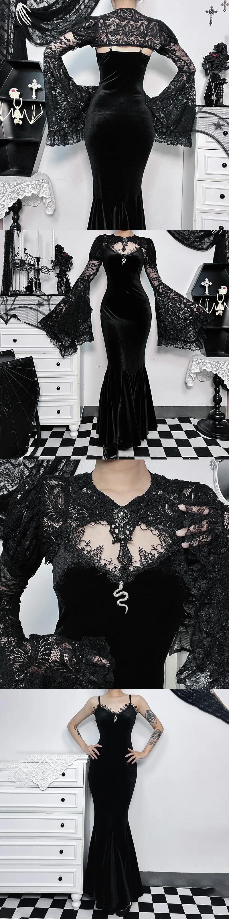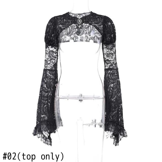 送料無料 ゴスダークスリング V ネックモールゴシックトランペットドレスヴィンテージグランジ女性レースシアークロップシュラッグトップエモイブニング Alt 衣装 Vネック ビンテージ AE15558879195733468